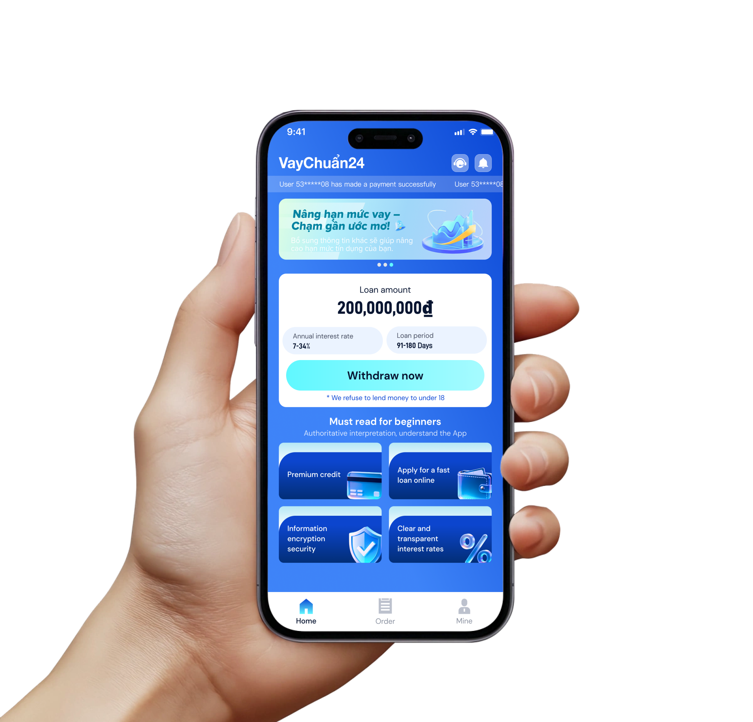 VayChuẩn24 offers an inventive, consistent and quick way to deal with customer loan products, enabling to adjust to your changing needs – serving you with high business morals and transparency.